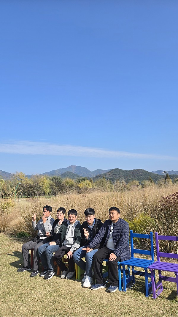 20251107_지역사회자원활용훈련 가을나들이 페이지 정보 작성자 예향 작성일25-11-18 16:23 조회253회 댓글0건 이전글 다음글 목록 본문 거창 별바람언덕에서 대형 풍차와 가을을 느낄 수 있는 갈대밭을 즐기고 거창 창포원에서 가을빛이 짙게 물든 국화와 2025년 가을의 끝자락을 야외 활동으로 마무리 했습니다. 댓글목록 등록된 댓글이 없습니다. 이전글 다음글 목록