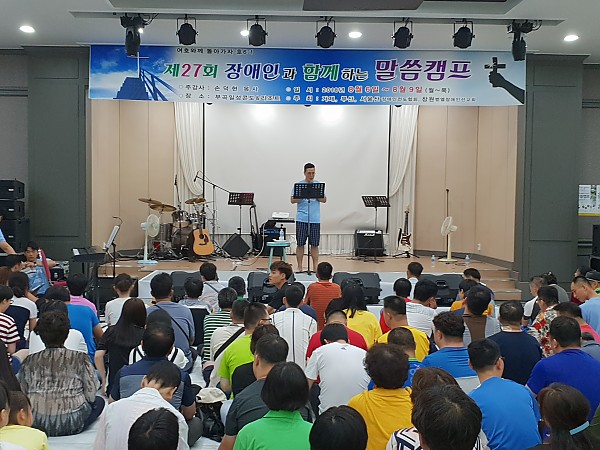 180806~180809 27회 말씀캠프 페이지 정보 작성자 예향 작성일18-08-09 18:51 조회3,793회 댓글0건 이전글 다음글 목록 본문 "여호와께로 돌아가자"라는 주제로 진행자와 봉사자 그리고 장애인 친구들 총 인원 460명이 부곡온천콘도에서 3박4일간 말씀캠프를 가졌습니다. 이번에는, 장유호산나교회, 북일교회 등... 많은 교회에서 참석해 주셨습니다. 감사합니다. 댓글목록 등록된 댓글이 없습니다. 이전글 다음글 목록